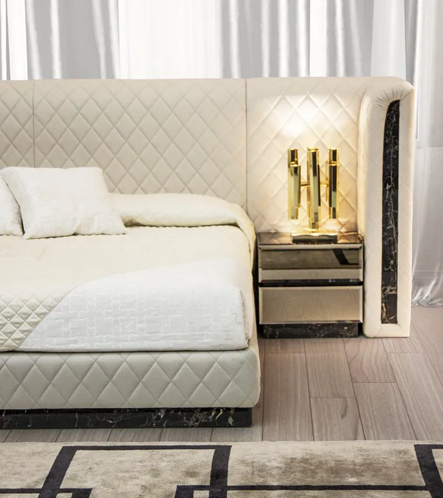 The Mirrored Glass Bedside Table features thoughtful design details, including its elegantly shaped drawers and the eye-catching marble base. The reflective surface of the mirror structure enhances natural light, adding brightness to the room. Decorative elements are subtly integrated, ensuring that the table stands out without overwhelming the surrounding decor.
