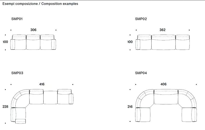 The Simposio sofa is available in a range of dimensions, tailored to meet modern standards of comfort and style. Its modular design allows for various configurations, ensuring that it fits perfectly in both compact and spacious living areas. The carefully considered sizes make it easy to integrate into your home, providing both aesthetic appeal and practicality.