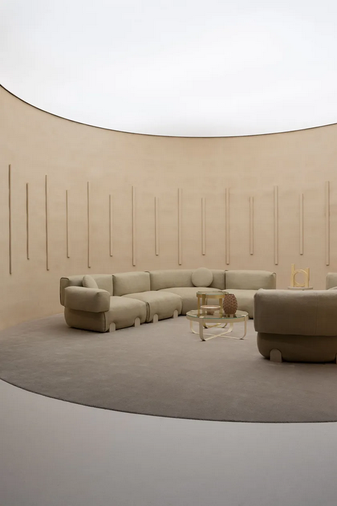 The aesthetic of the Simposio sofa is characterized by its sculptural form and attention to detail. The rounded edges and soft lines invite comfort while the subtle design elements, such as the foot structure, evoke a sense of luxury. The overall appearance is modern yet timeless, making it a versatile addition to any living area.