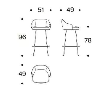 Standing at a height of 96 cm, the ISABELLE stool is designed to accommodate bar-height surfaces. Its robust plywood frame and cushioned seat ensure long-lasting comfort and support. The stool's dimensions are tailored to provide an optimal seating experience, while the chromed iron feet offer excellent stability. These technical specifications highlight the stool’s functionality, making it an ideal choice for modern living and commercial spaces alike.