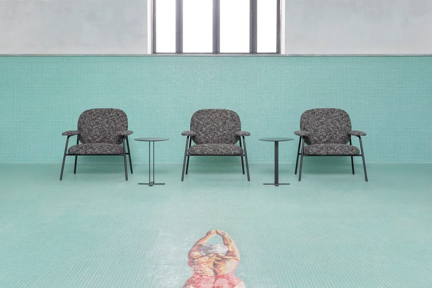 The Fabric Easy Chair with Armrests - PHILO by SABA ITALIA is a stunning addition to any living space, epitomizing modern elegance and comfort. This armchair offers a unique silhouette accentuated by a metallic thread that gracefully runs through the design. It is perfect for a variety of settings, including homes, offices, and communal meeting spaces. With its agile dimensions and welcoming form, the PHILO chair is ideal for fostering relationships and creating a warm atmosphere.
