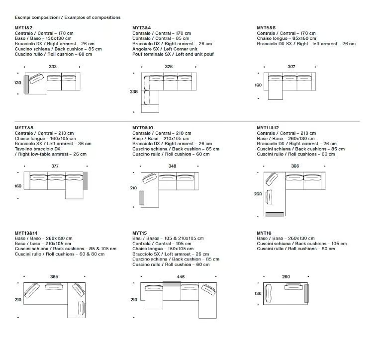 The MY TAOS sectional sofa consists of multiple components designed for flexibility and comfort. The composition includes a central sofa piece and chaise longue elements, allowing for various arrangements to suit your living space. This modular approach provides the freedom to create a layout that best fits your needs.