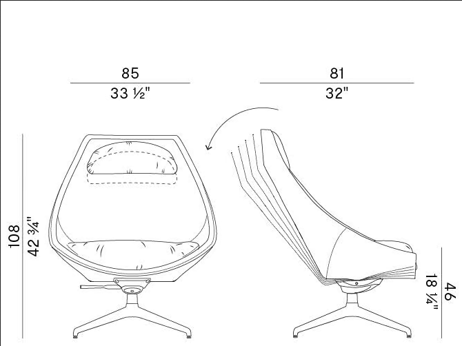 The CUT 910/PLG armchair features advanced mechanisms that enhance its usability. The reclining function allows for easy adjustment to various positions, providing personalized comfort. The swivel base enables smooth rotation, making it ideal for social settings or relaxing moments. These technological innovations are designed to improve the overall user experience, ensuring both style and functionality are prioritized.