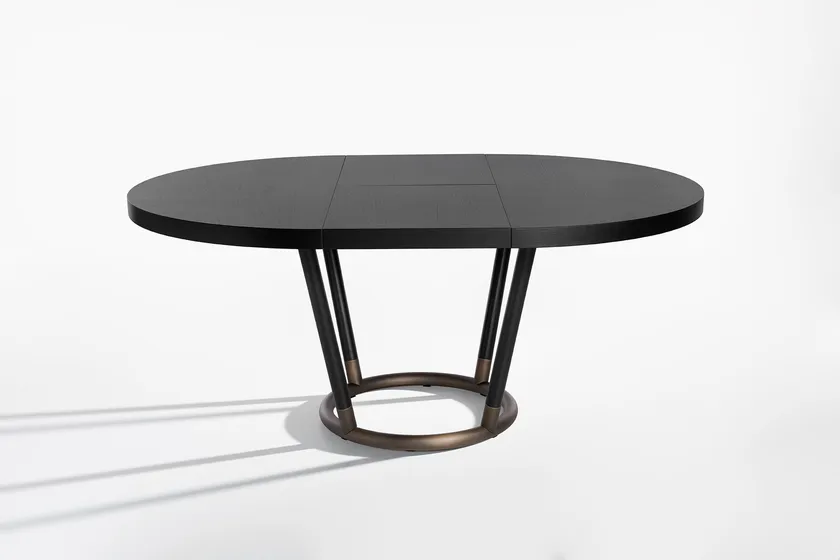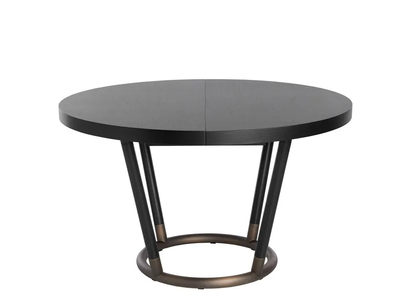 The Extending Round Wooden Table PIPE 885/TC by POTocco is a stunning addition to any modern kitchen. This versatile dining table, crafted from high-quality ash wood, boasts a central extension that allows for easy adaptation to varying dining needs. Its architectural design, complemented by a round bronzed brass base, combines elegance with functionality. This table is perfect for family gatherings or intimate dinners, making it an essential piece for contemporary living.