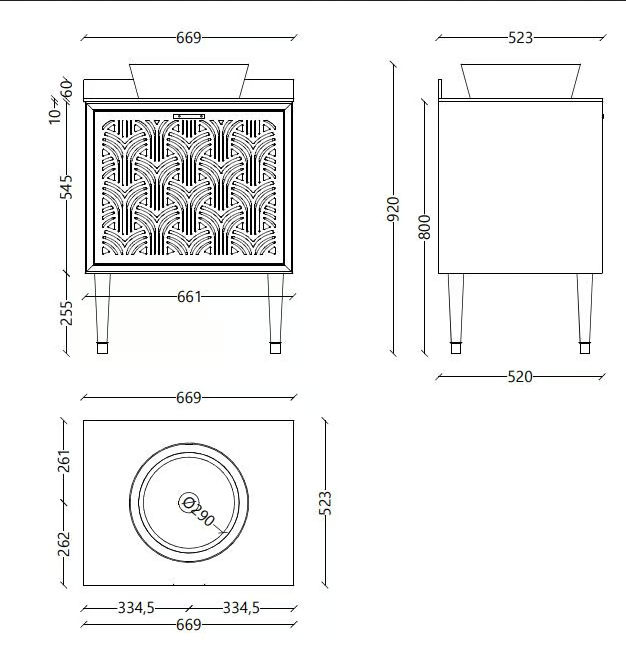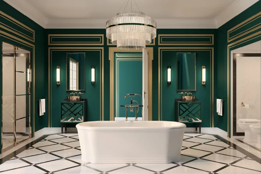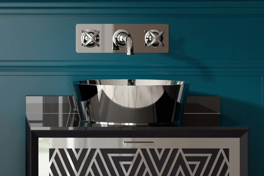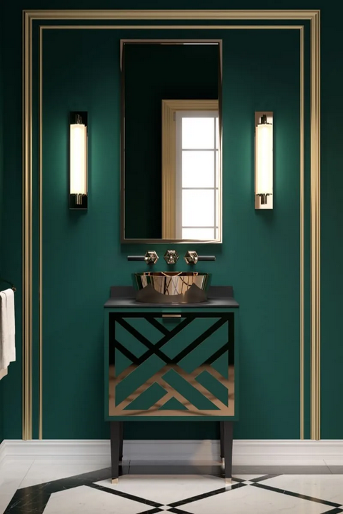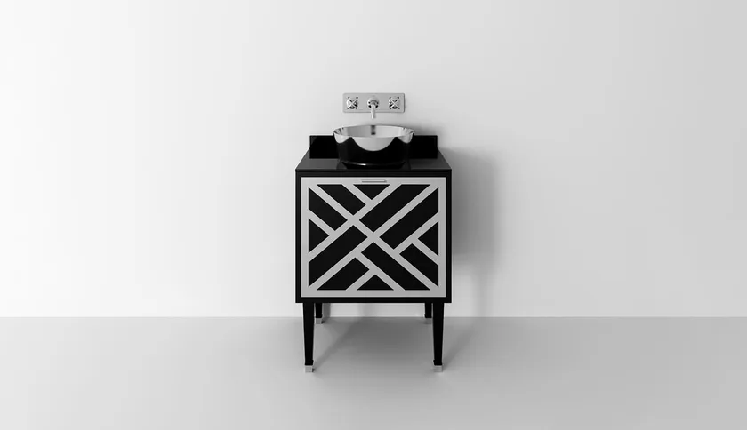 The vanity unit showcases a captivating Art Deco style that seamlessly blends tradition with modernity. Its elegant lines and distinctive metal decorations create a stunning visual impact, making it a focal point in any bathroom. The design reflects a unique artistic expression, combining timeless elements with contemporary flair to deliver a piece that is both functional and aesthetically pleasing.
