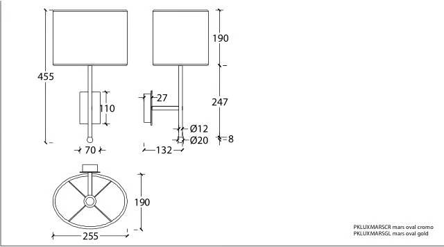 Fabric wall lamp with fixed arm Mars Oval Park Avenue PKLUXMARS