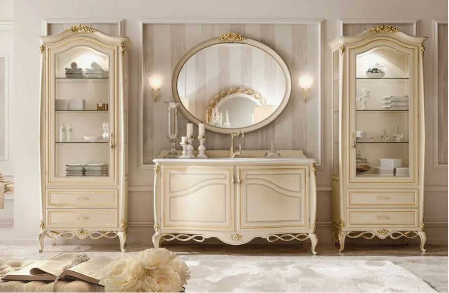Shaped dresser with 3 big drawers, presented in a classic style Italian company SIGNORINI COCO&C, collection Forever. Made of solid wood, decorated with carved elements.